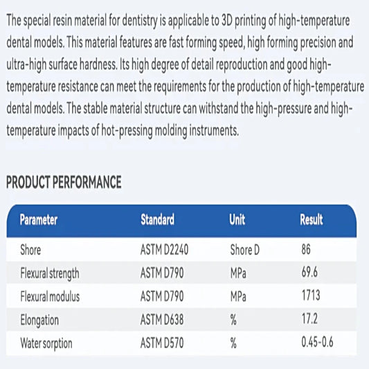 Withstand high temperatures without deformation! This resin is perfect for orthodontic and other applications where heat resistance is crucial. Expect great accuracy and reliability.
