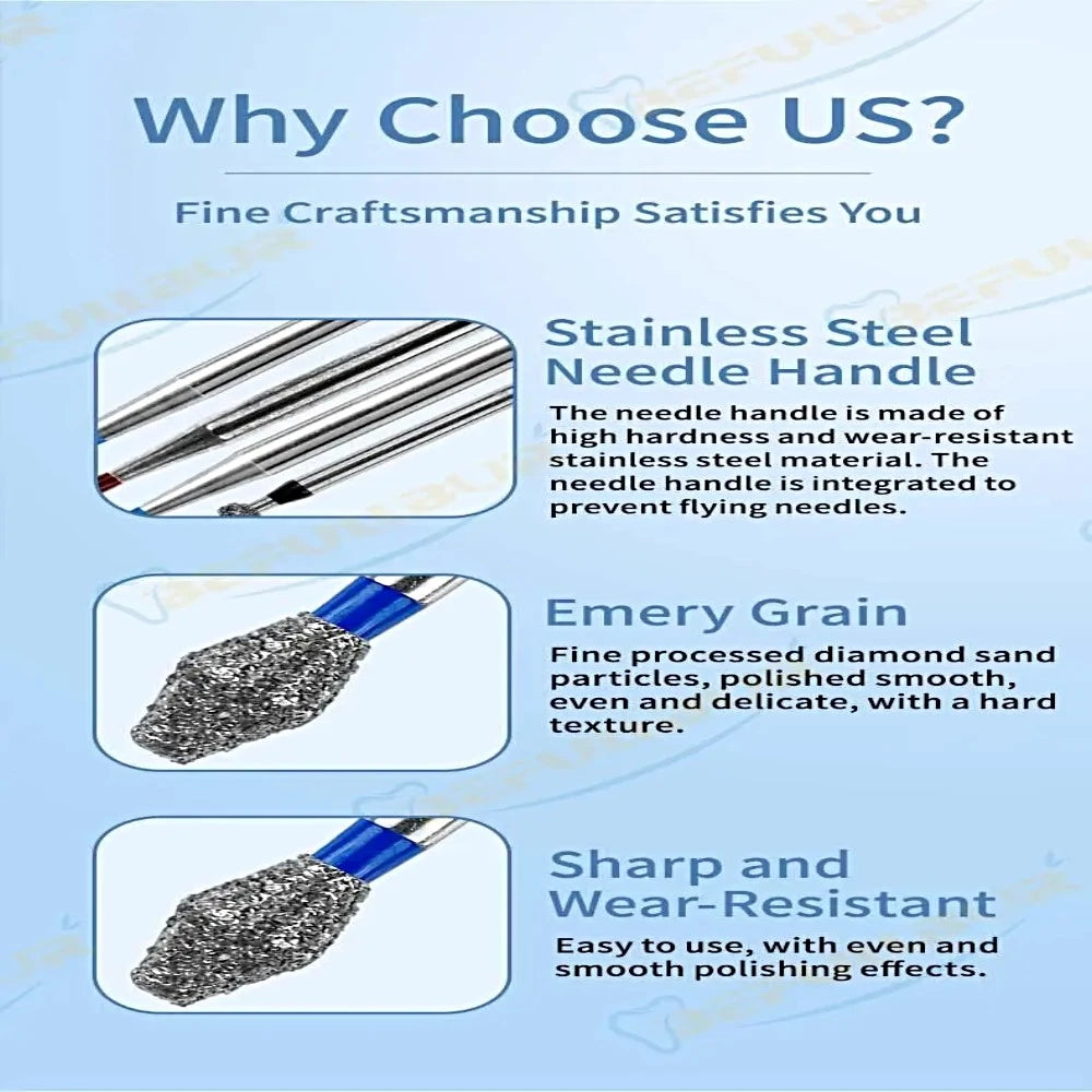 Dental Diamond Burs TC Type 10PCS Teeth Polishing Stainless Steel for High Speed Handpiece