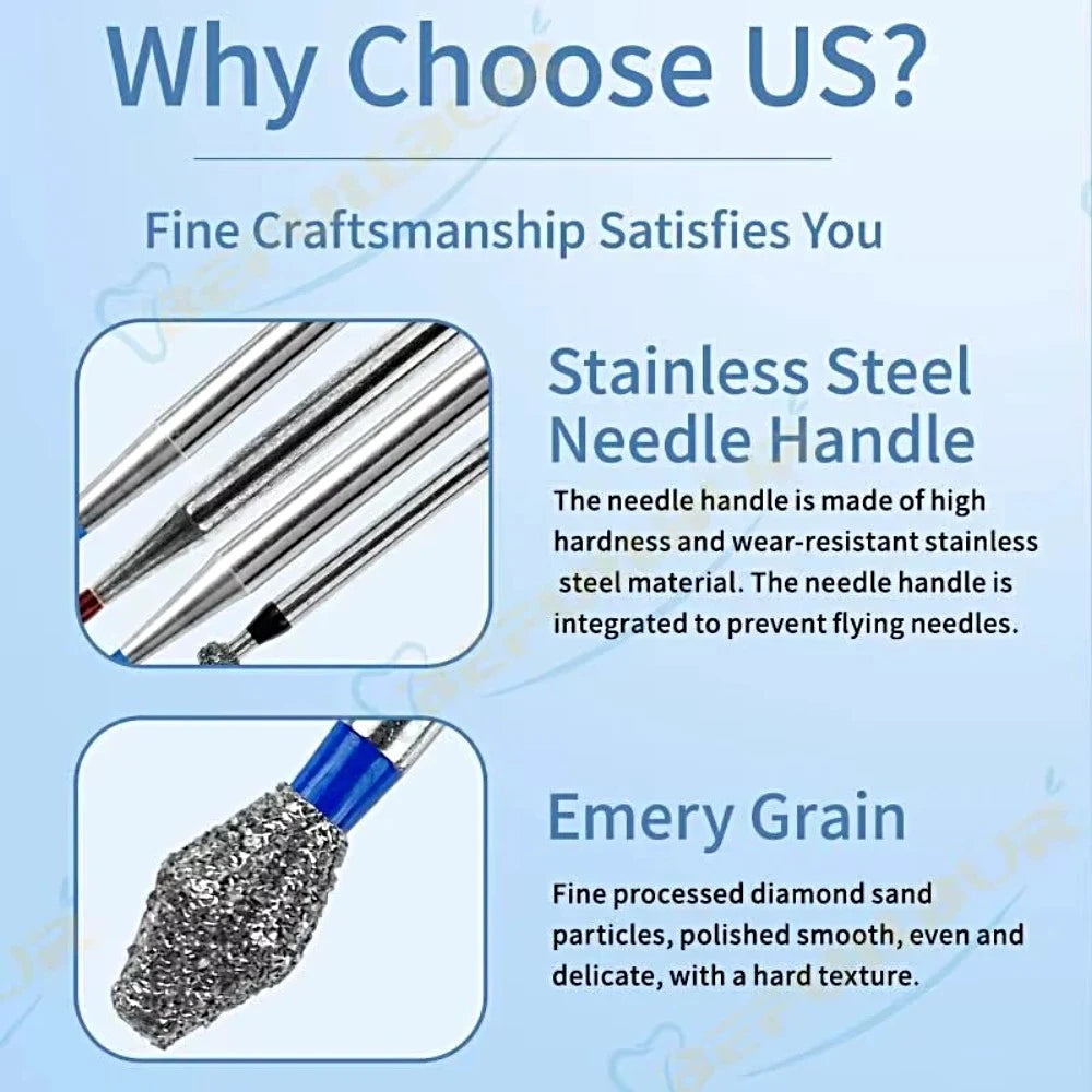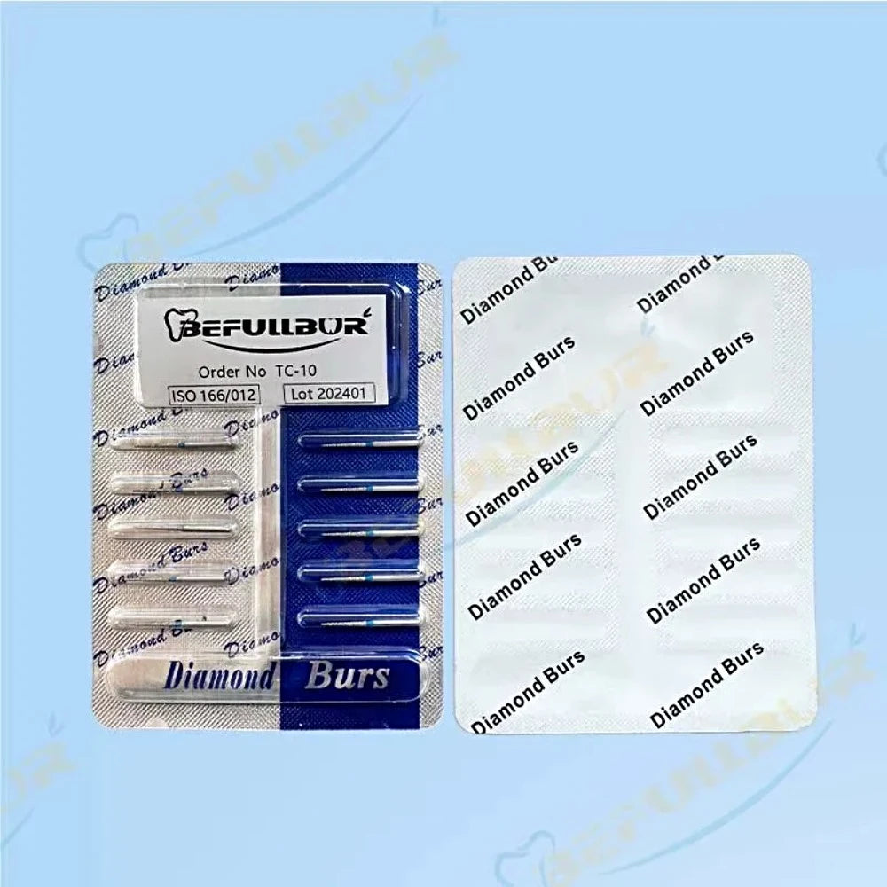 TR-C Type 10PCS Dental Diamond Burs Teeth Polishing Stainless Steel for High Speed Handpiece